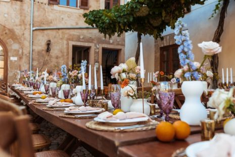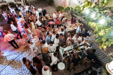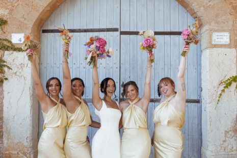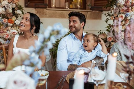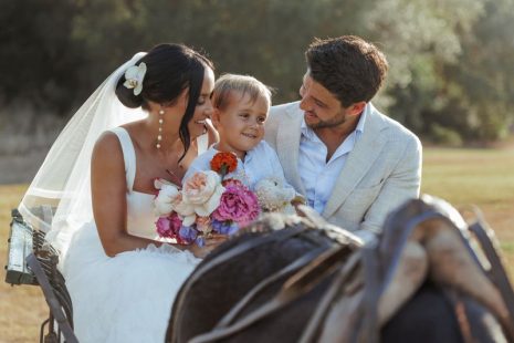 Outside the finca entrance, the ceremony pillars were adorned with many bright-coloured flowers. The talented photographers Ana Garcia and George Peake documented every moment and detail of Abbie and Matt’s special day, including the donkey-and-cart ride that had been organised especially for their son Ronny. After a delightful cocktail hour, the doors to the courtyard opened up, and the guests were invited to take their places. The yummy food stations and the passionate Spanish Gyspy King tribute music set the courtyard on fire, and the guests just kept on dancing and dancing.