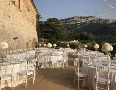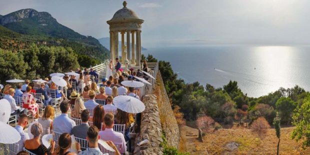 Masses of couples are drawn to Mallorca’s most iconic venue, with a white temple gazebo and beautiful views of the sea and the mountains. Claire and Josh fell in love with it.