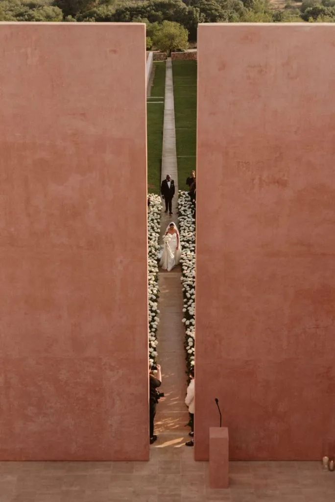 Description: The stellar architects Claudio Silvestrin and John Pawson have transcended art and modern functionality in this villa creation. Pristine beaches are nearby. At the villa, the allure includes two saltwater pools, a tennis court, a vegetable garden, and modern appliances. But the views, the stylish design, the blend of the evening light with the beautiful pink colour and the exciting way you can create a wedding ambience to suit it make it especially exciting. It is also the dream place for many to shoot for a wedding photographer.