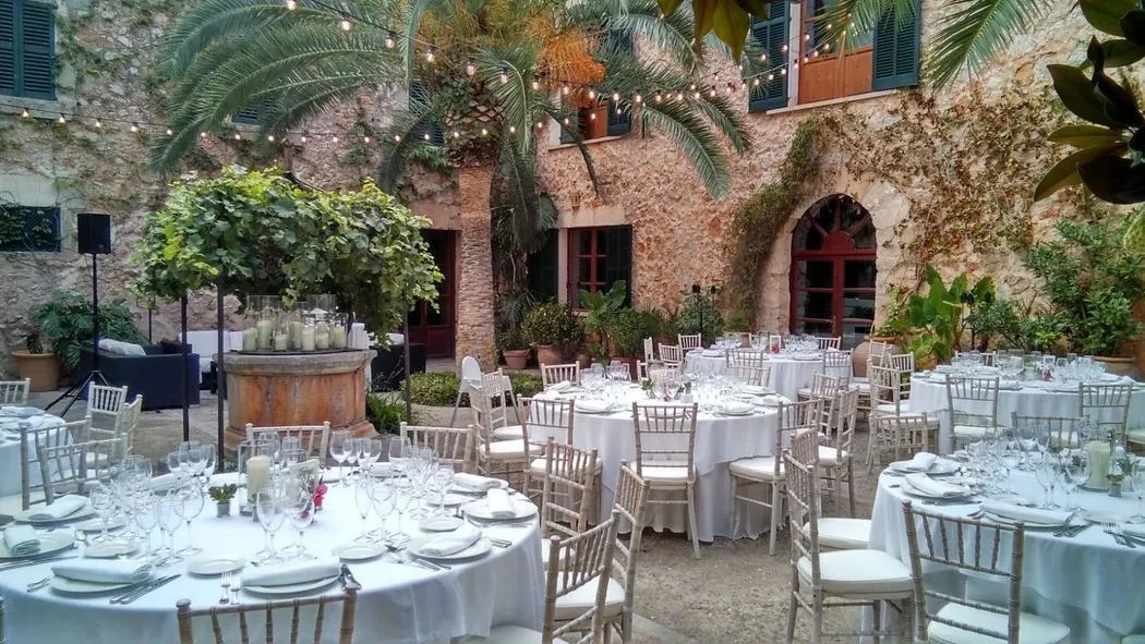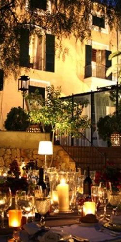 Dine outside in the decorative gardens, in the charming courtyard or inside in the huge party room. There are multiple options for the ceremony too – such as the gardens, the Roman style theatre, the entrance to the finca, the chapel or the courtyard.