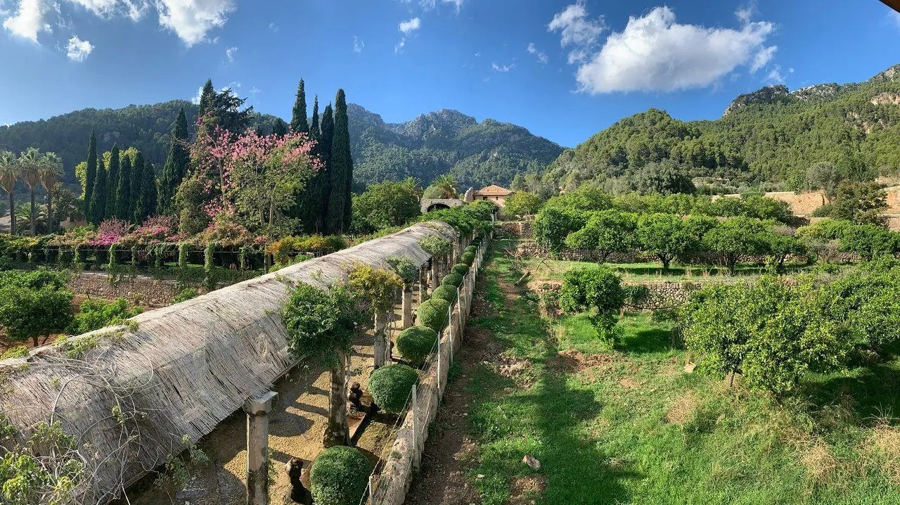 At the foot of the Tramuntana mountain range is a lovely estate with a mansion, gardens and orchard, that appear in literature as far back as the Moorish rule in Mallorca. Many hundreds of years of rural and gentrified lives have been lived here. Many styles are still mixed in with the magic – Gothic, Renaissance, Arabic, Baroque, Roman and Rococo… The entrance to the mansion is powerful, the steps that lead to the garden are beautiful and the courtyard, promenades, pond and garden dining areas transport you to a fairytale.