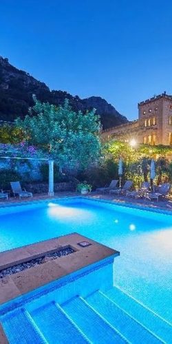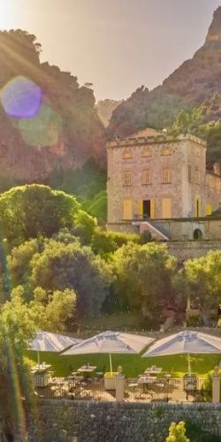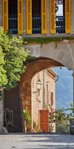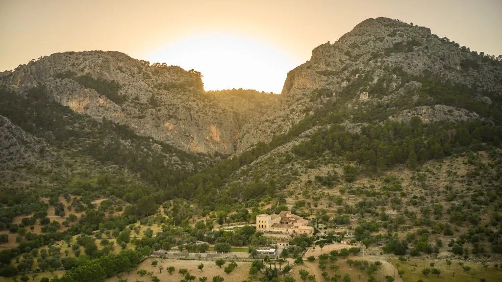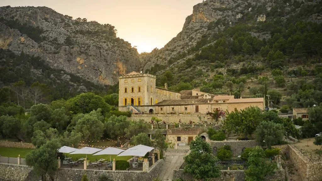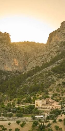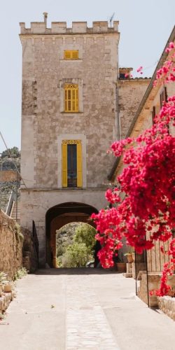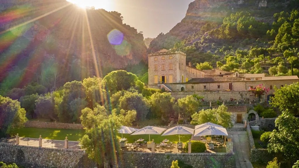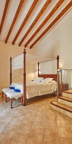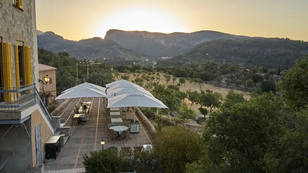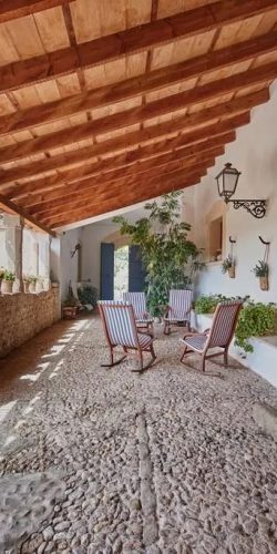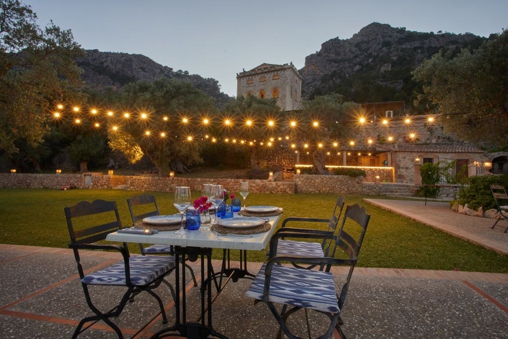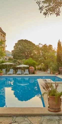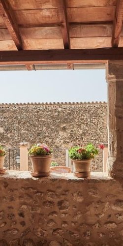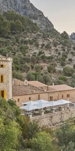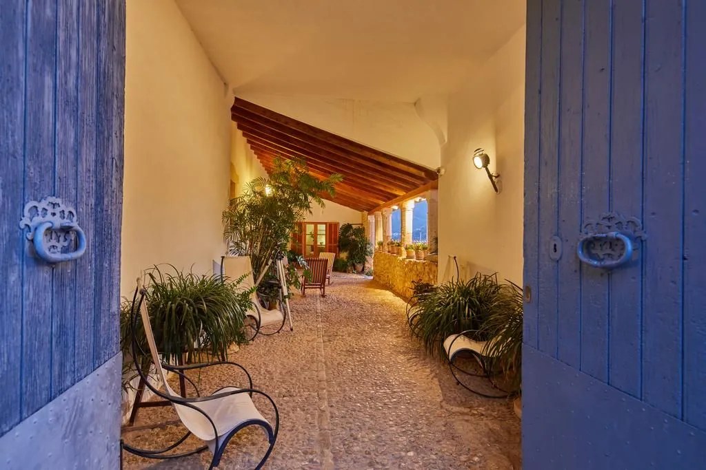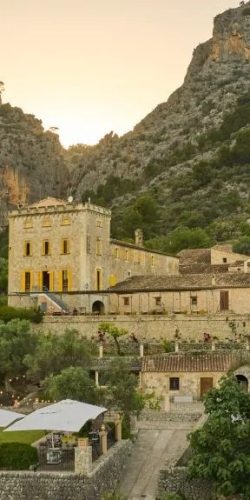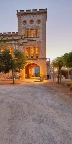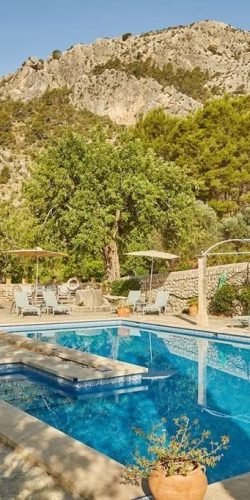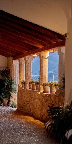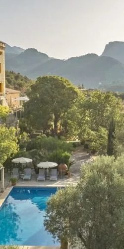 Description: A fantastic finca hotel with modern amenities in a magnificent old Moorish farm from the 13th century, located at the foot of the glorious Tranumtana mountains. Surrounded by Mallorca’s beauty at every turn, the hotel offers vast scenery – even distant views of the sea. The venue also has a modernist touch to the main building, with painted window glass, interior design and some yellow and blue touches. Large terraces and gardens, a pool area and a cosy courtyard complete the picture. Rent the hotel exclusively to create a very private and beautiful wedding celebration.
