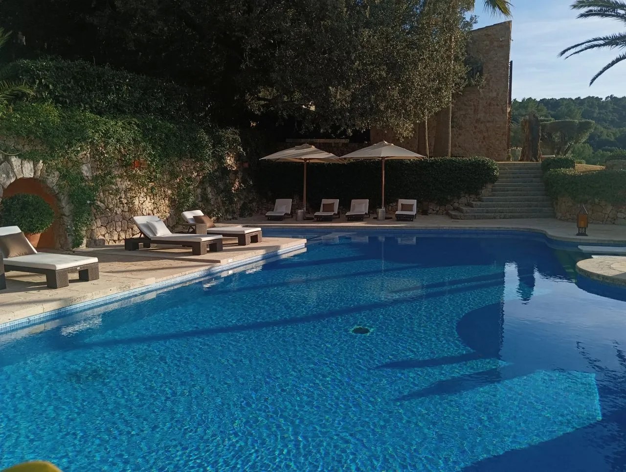In a stunning green valley near Pollenca, you will find a very special venue with everything from a gorgeous mansion with in and outdoor pools, a private gym and top SPA to a state-of-the-art gym, a private lake, a chef’s kitchen, a cinema, private gardens and terraces, hairdressing facilities, a children’s playground, private farm and a private vineyard!
